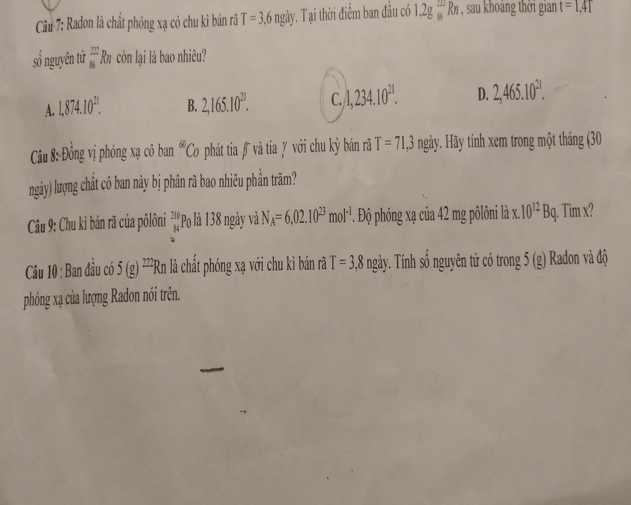 `-` Số nguyên tử có trong 5(g) Radon là: