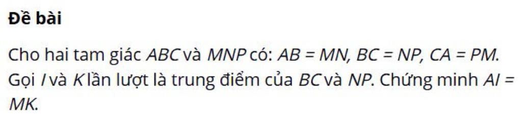 `=>` `AI=MK` (`2` cạnh tương ứng)