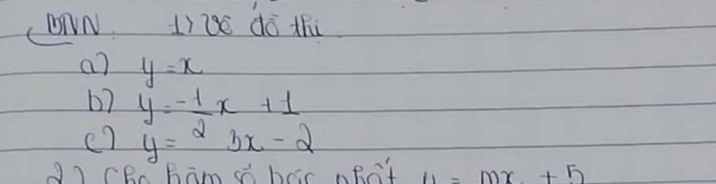Khi `y = 0, 0 = -1/2x + 1 => x = 2`. Điểm `(2, 0)` nằm trên đồ thị.