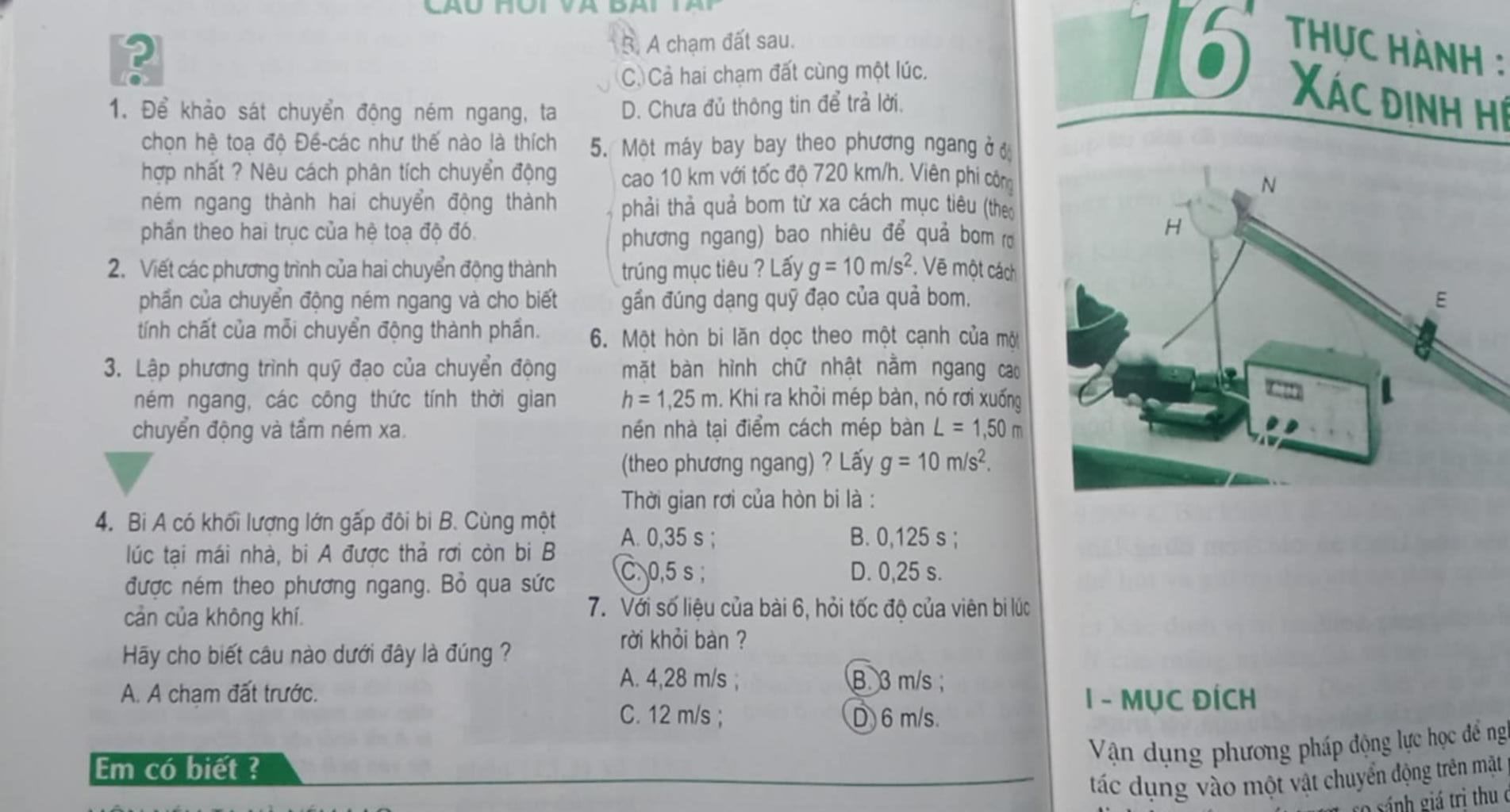 `+)` $h=\frac{1}{2}gt^2\Rightarrow t=\sqrt{\frac{2h}{g}}=\sqrt{\frac{2.1,25}{10}}=0,5\left(s\right)$