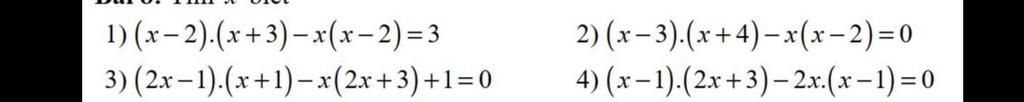 4) (x - 1) . (2x + 3) - 2x . (x - 1) = 0