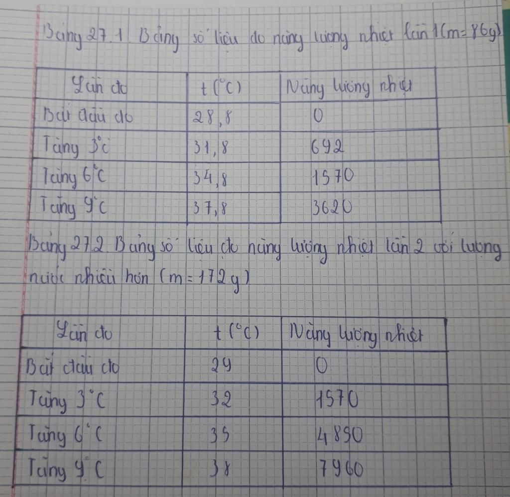 Câu 1 từ kết quả thí nghiệm ,nhận xét về năng lượng nhiệt cần thiết để đun nóng nước.