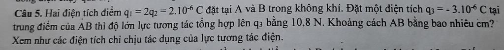 Vì hai lực cùng phương, ngược chiều nên lực tổng hợp tác dụng lên `q_3` là: