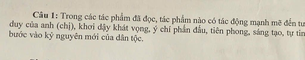 trong tác phẩm đã học tác phẩm nào có tác động mạnh mẽ đến tư duy của anh chị khơi dậy khát vọng ý chí phấn đấu tiên phong tự tin sáng tạo bước vào kỷ nguyên mới của dân tộc