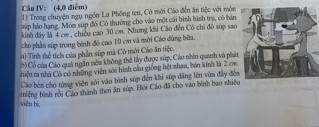 cho phần súp trong bình đó cao 10 cm và mời Cáo dùng ...