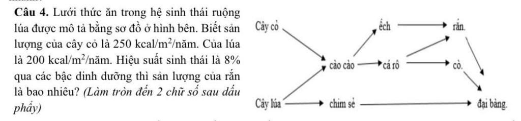 Câu 4. Lưới thức ăn trong hệ sinh thái ruộng