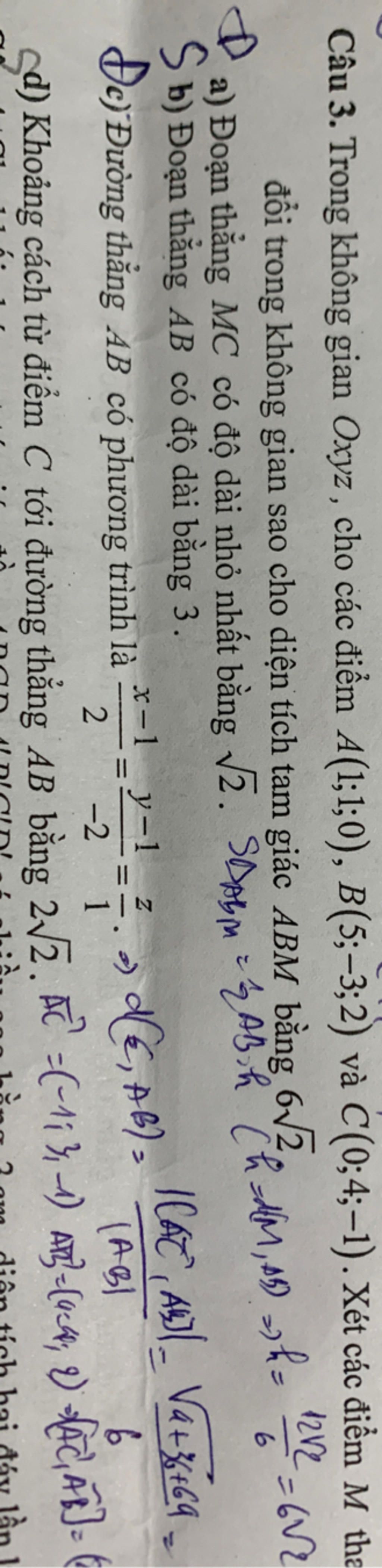 đổi trong không gian sao cho diện tích tam giác ABM bằng 62,