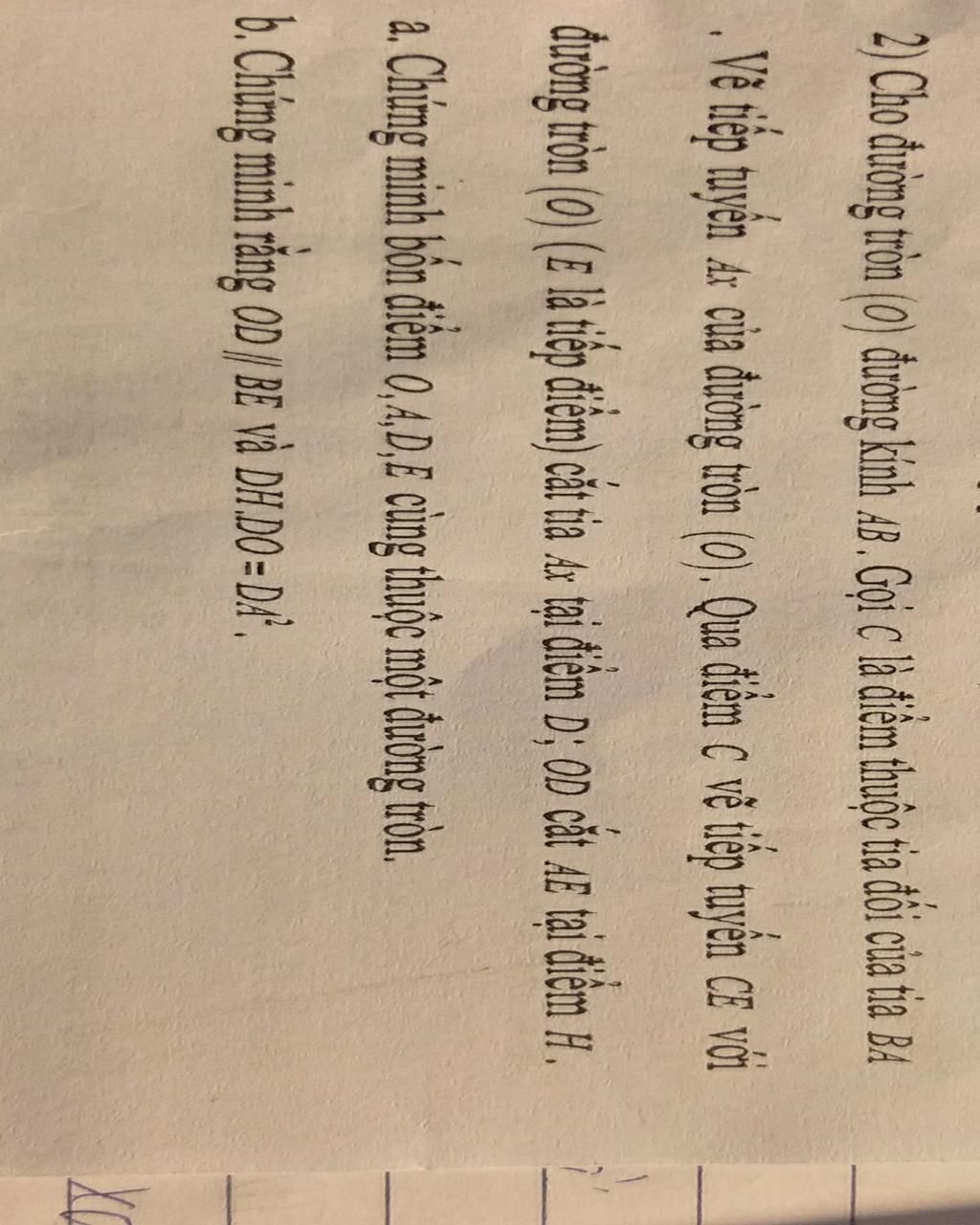 $\to O, A, E, D\in$ đường tròn đường kính $OD$