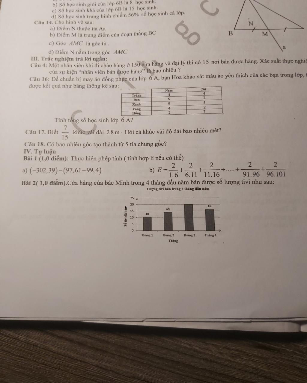 c) Số học sinh khả của lớp 6B là 15 học sinh.