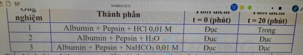 Mọi người giải thích giúp mình 3 hiện tượng ở dưới theo mốc 0ph và 20ph nhé và giải thích hiện tượng khi thay thế pepsin ở ống nghiệm 3 thành chymotrypsin