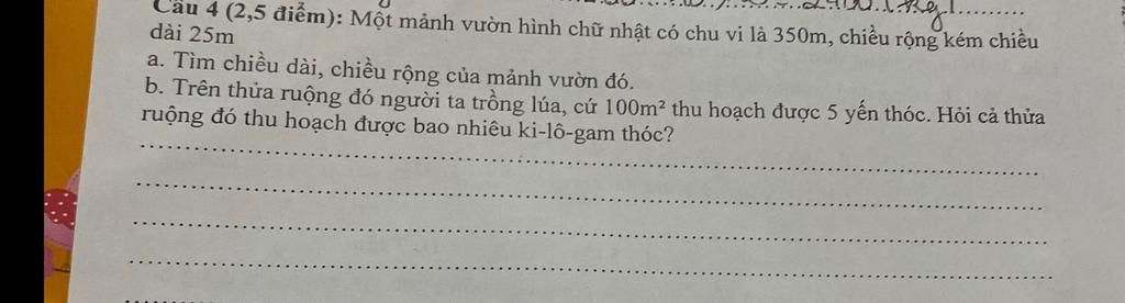 `a.` Chiều dài của mảnh vườn đó là: