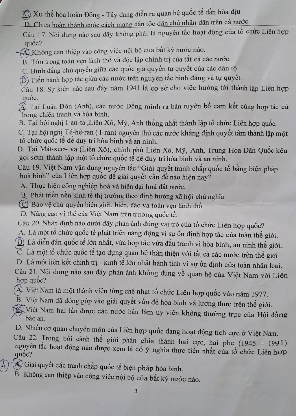 20. B → Nhận định đúng nhất: Liên hợp quốc là diễn đàn quốc tế lớn nhất, vừa hợp tác vừa đấu tranh vì hòa bình, an ninh thế giới. Đây là vai trò then chốt của tổ chức này từ khi ra đời (1945) đến nay, thông qua Hội đồng Bảo an, Đại hội đồng và các cơ quan chuyên môn.
