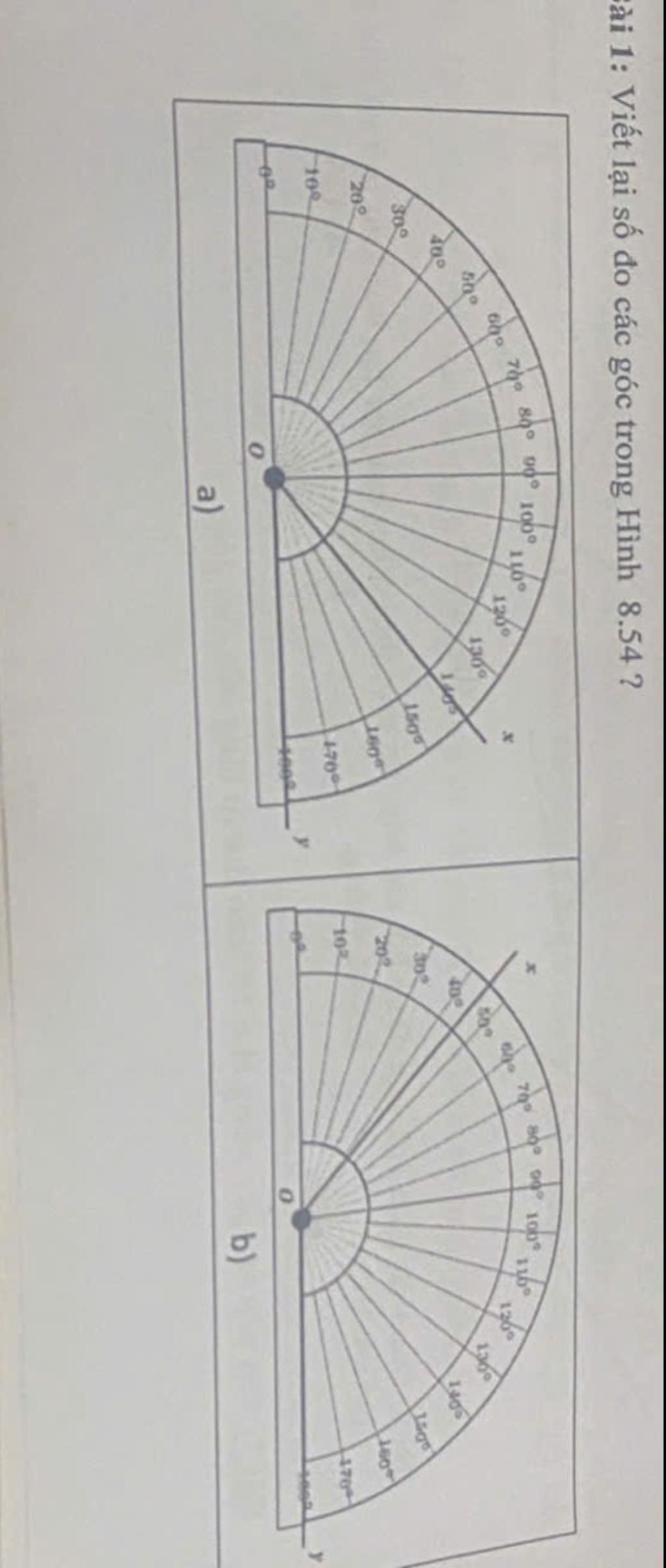 `a)` Ta thấy đường thẳng `Ox` trùng với góc `140^@`