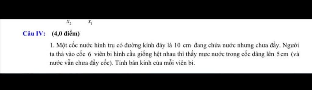 Sau khi bỏ `6` viên bi vô thì mực nước tăng `5\ cm`