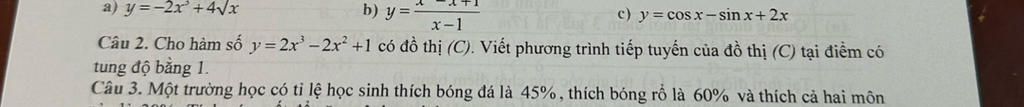 `->` Phương trình tiếp tuyến : `y = 2.(x-1) +1 = 2x-1`
