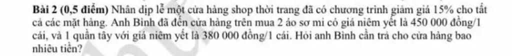 Số tiền anh Bình cần trả cho cửa hàng là :