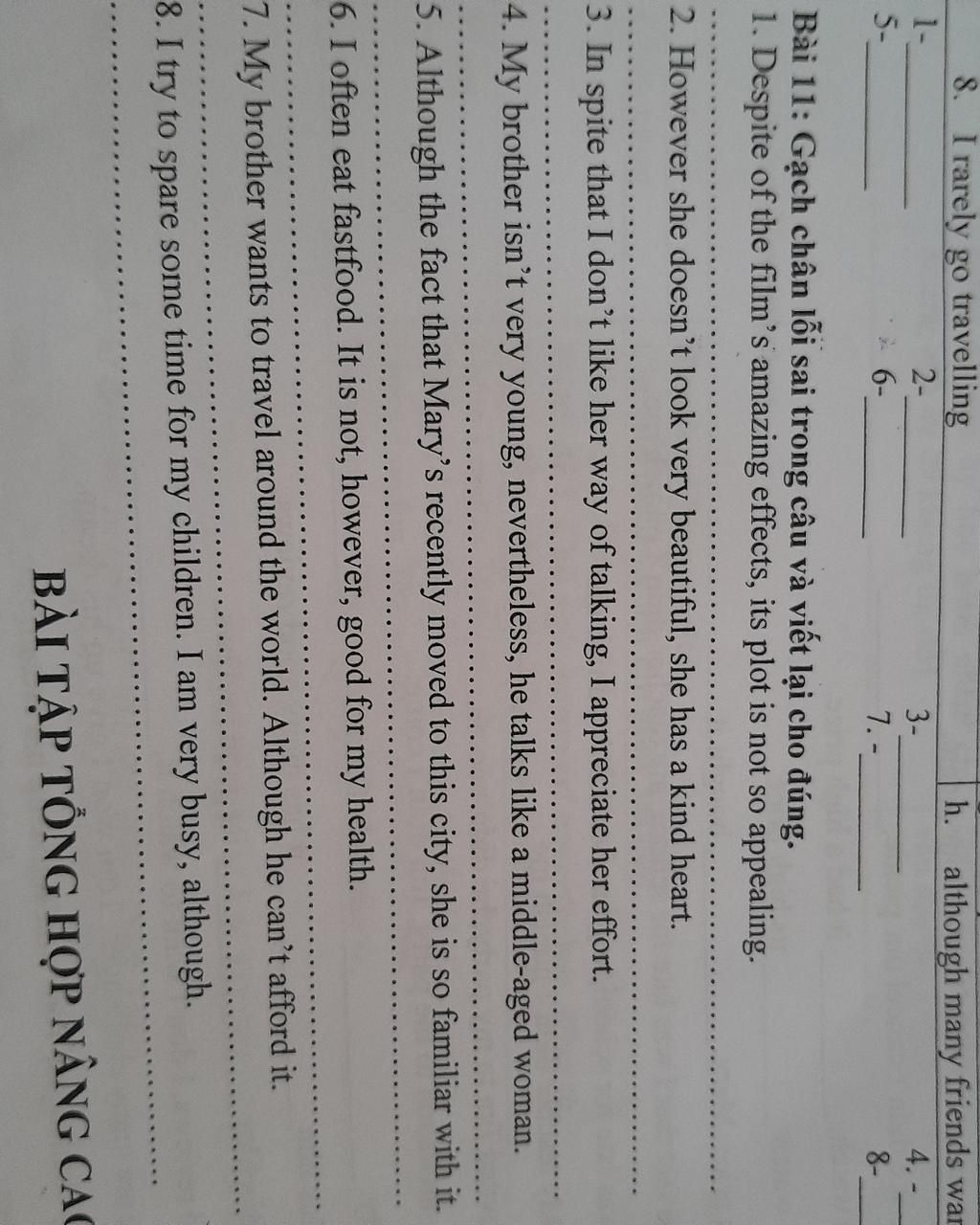 8.Sửa lại: I try to spare some time for my children, although I am very busy.