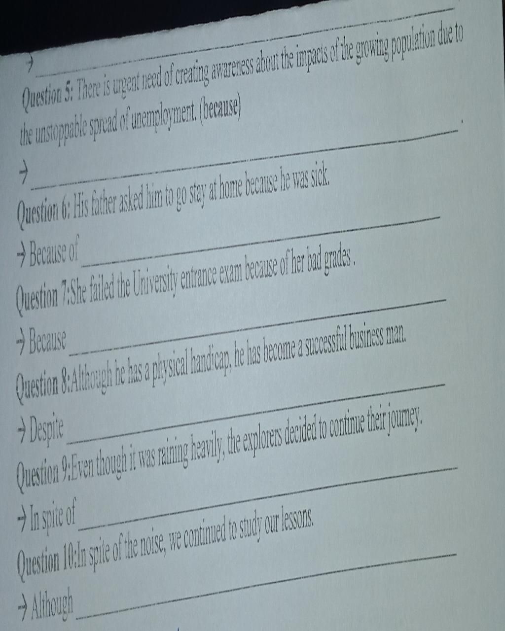 ` 9. to ` In spite of the heavy rain, the explorers decided to continue their journey.