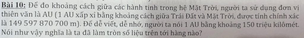 $\text{Có : 149 597 870.7 km ≈ 150 000 000 km}$