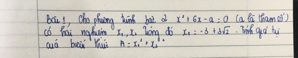 Khi đó $A = x_1^2+x_2^2 = (-3+3\sqrt 2)^2 + (-3-3\sqrt 2)^2 = 54$
