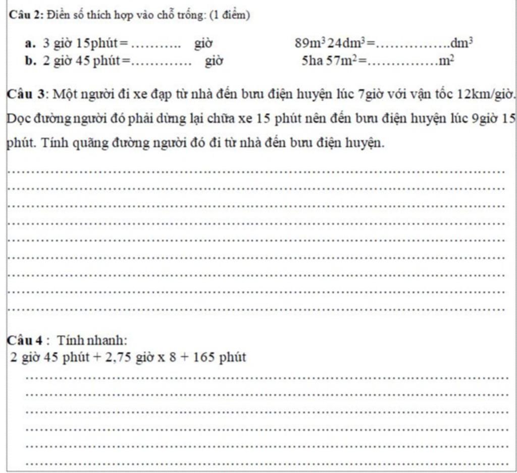 3 giờ 15 phút = 3 + 15/60 = 3,25 giờ