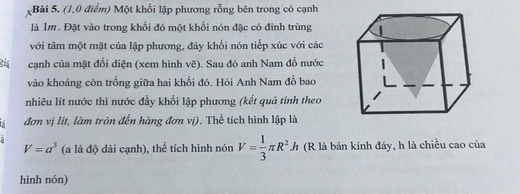 xBài 5. (1,0 điểm) Một khối lập phương rỗng bên trong có cạnh