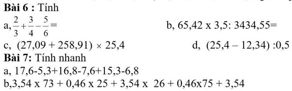b) TA LÀM NHƯ SAU =3,54×73+3,54×26+3,54+0,46×25+0,46×753,54×73+3,54×26+3,54+0,46×25+0,46×75