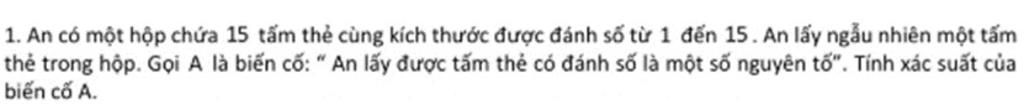 1. An có một hộp chứa 15 tấm thẻ cùng kích thước được đánh số từ 1 đến 15 . An lấy ngẫu nhiên một tấm