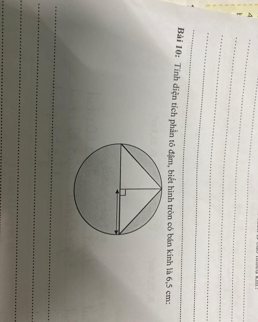 Diện tích hình tròn là : 6.5 x 6.5 x 3.14 = 132.665 cm