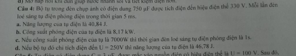 `-` Nếu hiệu điện thế là `250(V)`, năng lượng của tụ điện là: