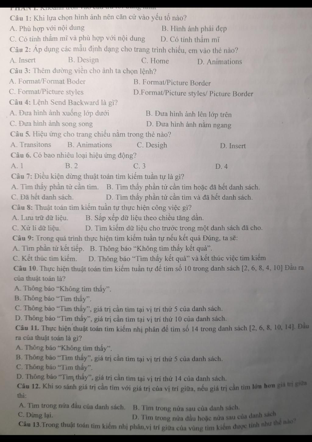 Câu 1: Khi lựa chọn hình ảnh nên căn cứ vào yếu tố nào?