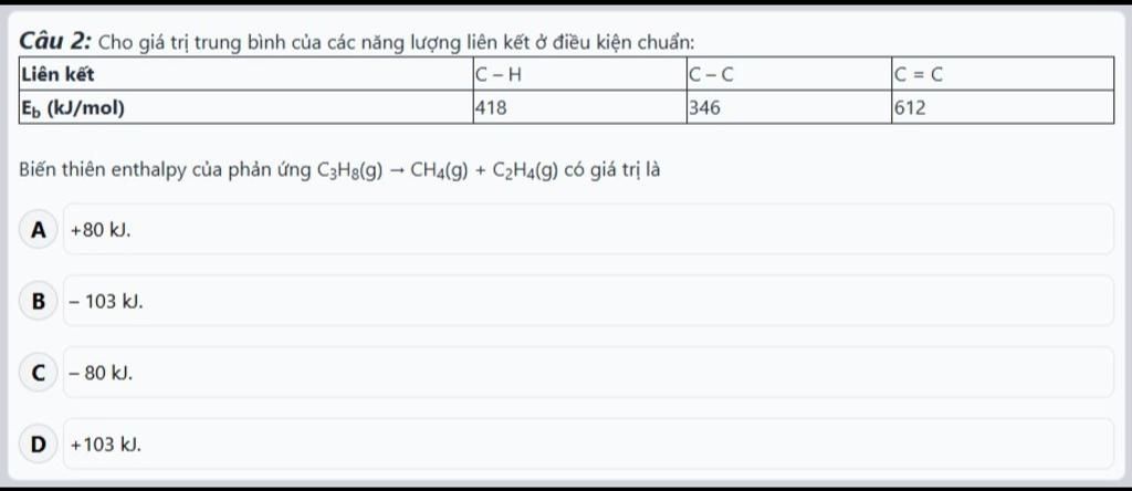 `= 2E_{b(C-C)} - E_{b(C=C)} = 346.2 - 612 = 80(kJ)`