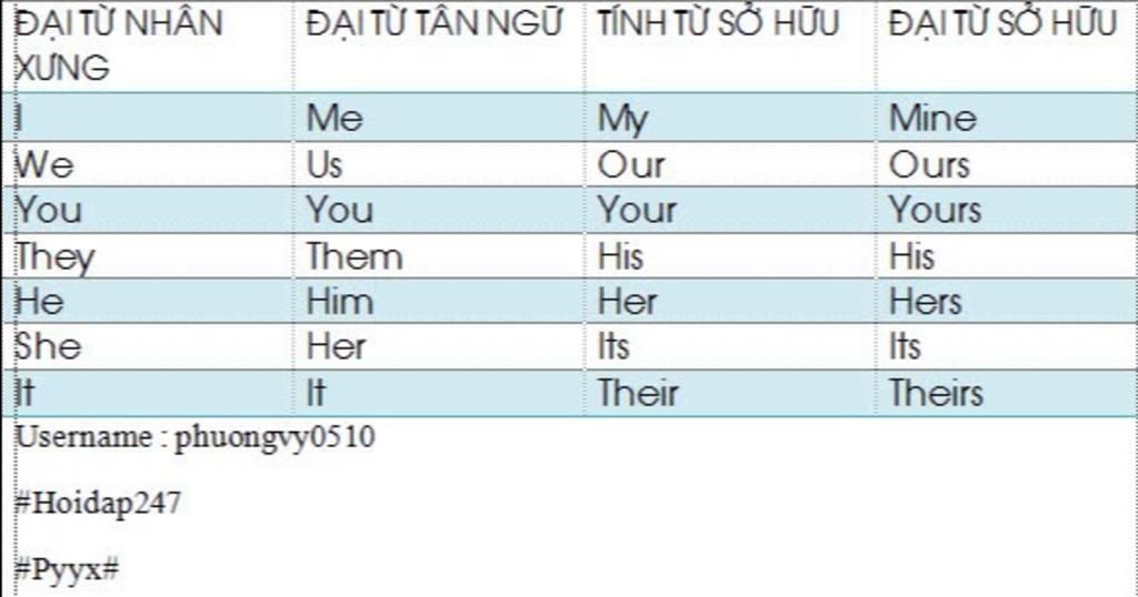 ` - ` Đại từ sở hữu ` = ` Tính từ sở hữu `+` N