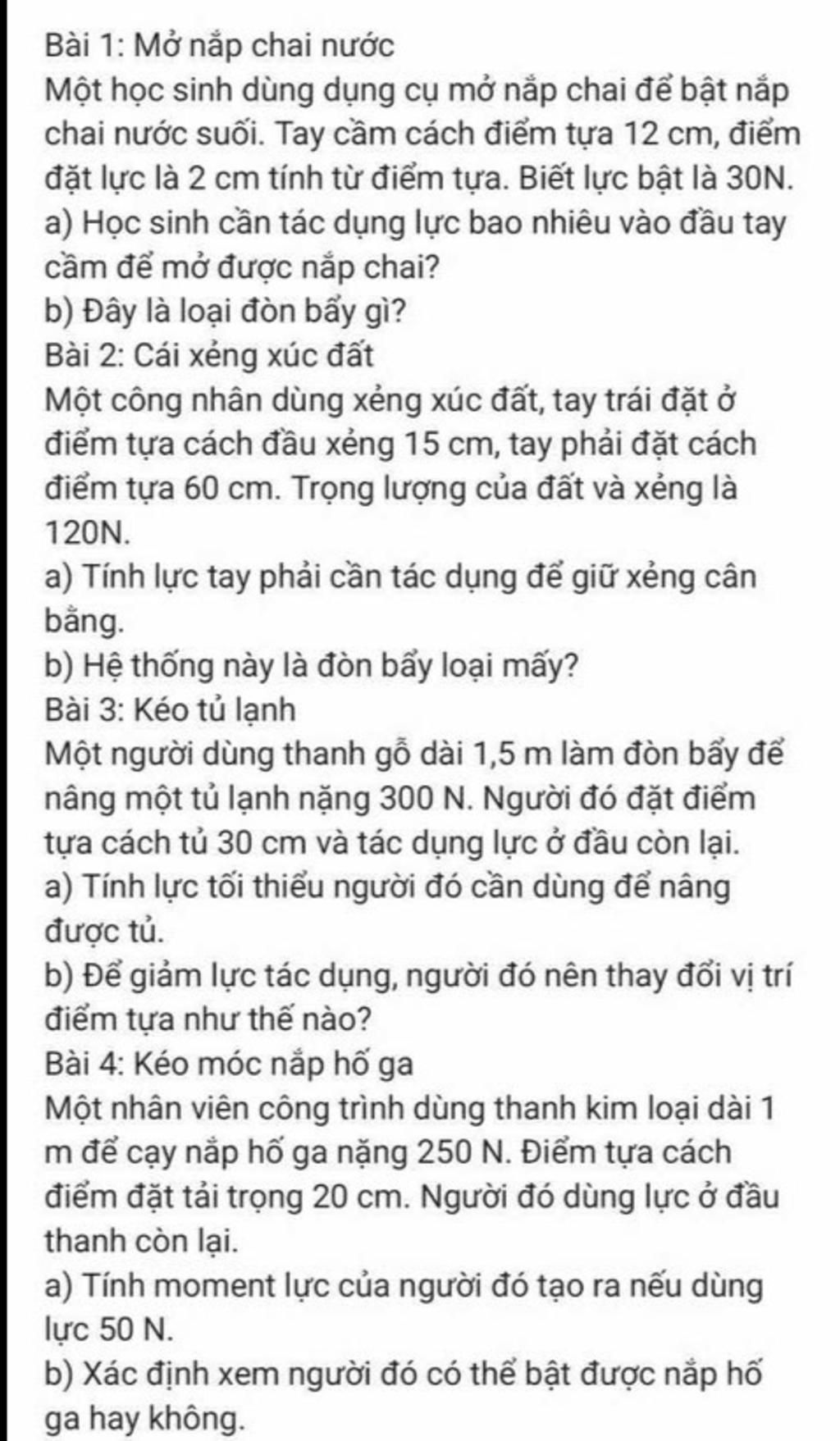 b) Đây là đòn bẩy loại 2 (vật cản nằm giữa).