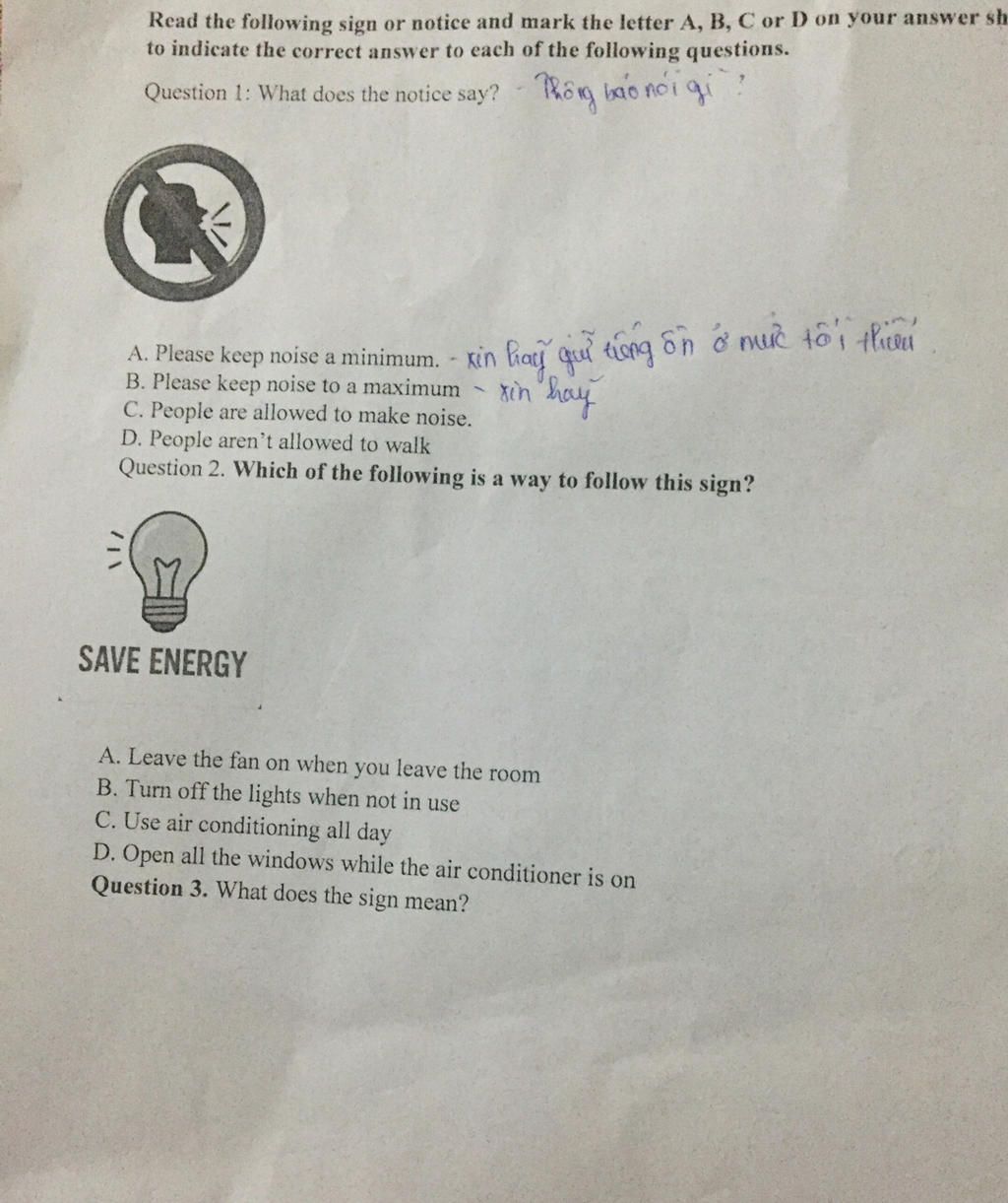 `-` Please keep noise to a minimum: Làm ơn hãy giữ tiếng ồn ở mức tối thiểu