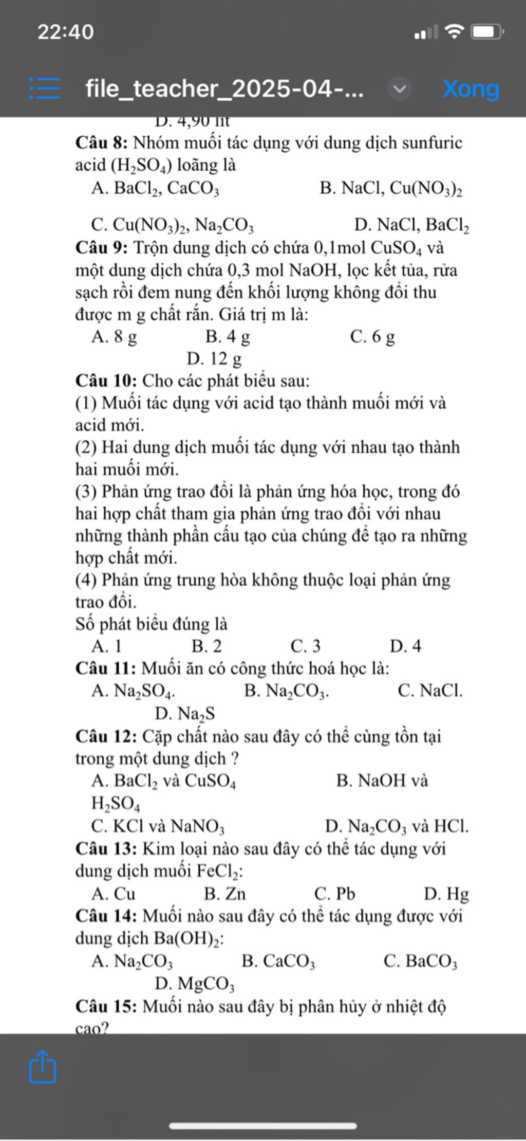 Câu 10: C. 3 ngoại trừ `(4)` vì phản ứng trung là phản ứng trao đổi và luôn xảy ra tại mọi điều kiện
