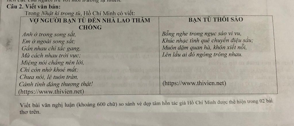 viết bài văn nghị luận so sánh vẻ đẹp tâm hồn của tác giả hồ chí minh được thể hiện trong hai bài thơ mỗi người bạn cũ đến nhà lao thêm chồng và bạn tù thổi sáo trong nhật ký đi tù hồ chí minh