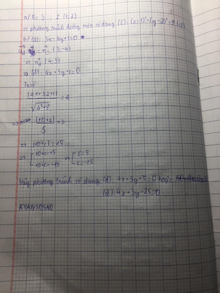 b) Viết các phương trình tiếp tuyến của đường tròn ( ) C biết tiếp tuyến vuông góc với đường thẳng 3x-4y+1=0