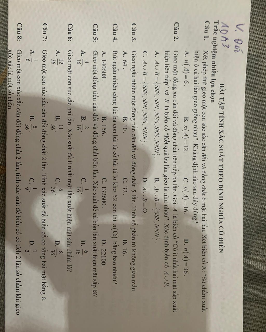 Đáp án: A. $n(A)=6$