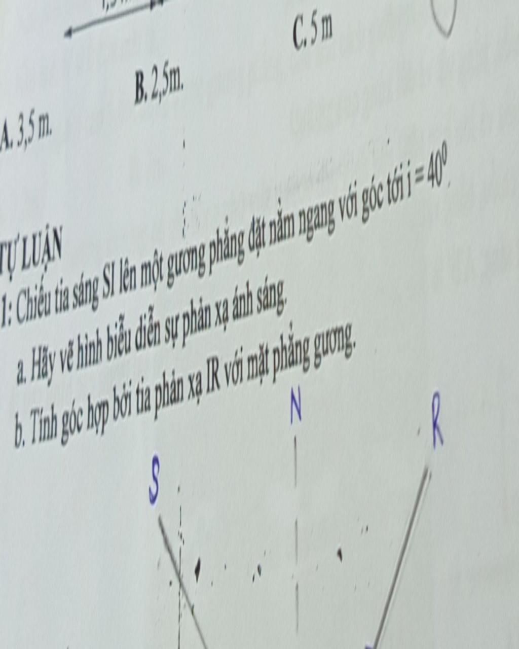 1. Chiều từ sáng SI lên một giống phẳng đặt nằm ngang với góc tới 400