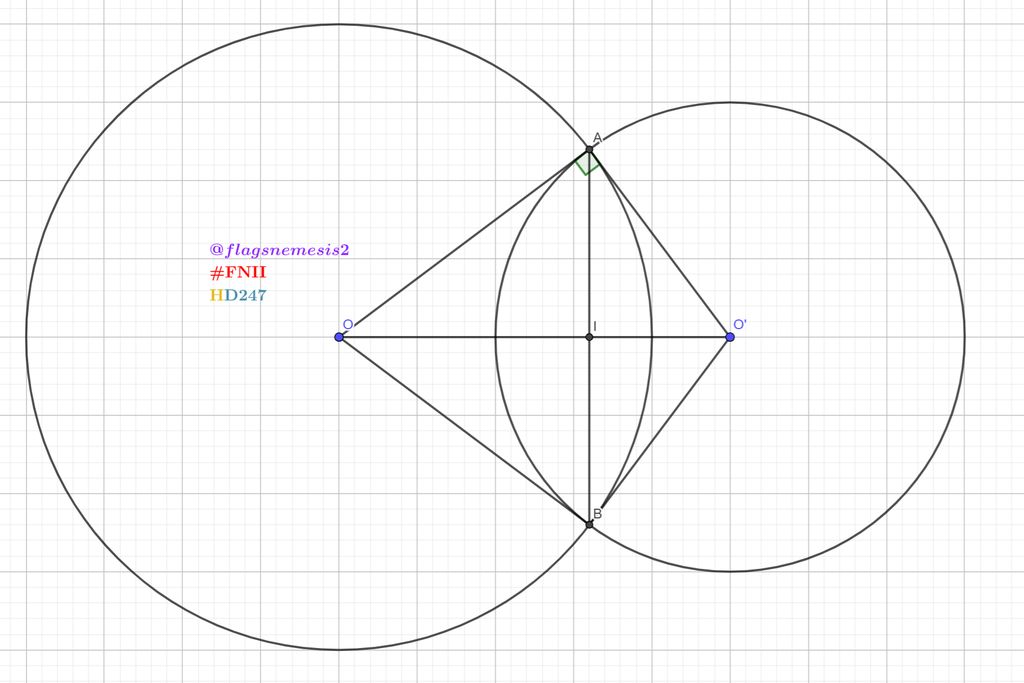 Vì $(O)$ cắt $(O')$ tại $A, B$ nên $OO'$ là đường trung trực của $AB$