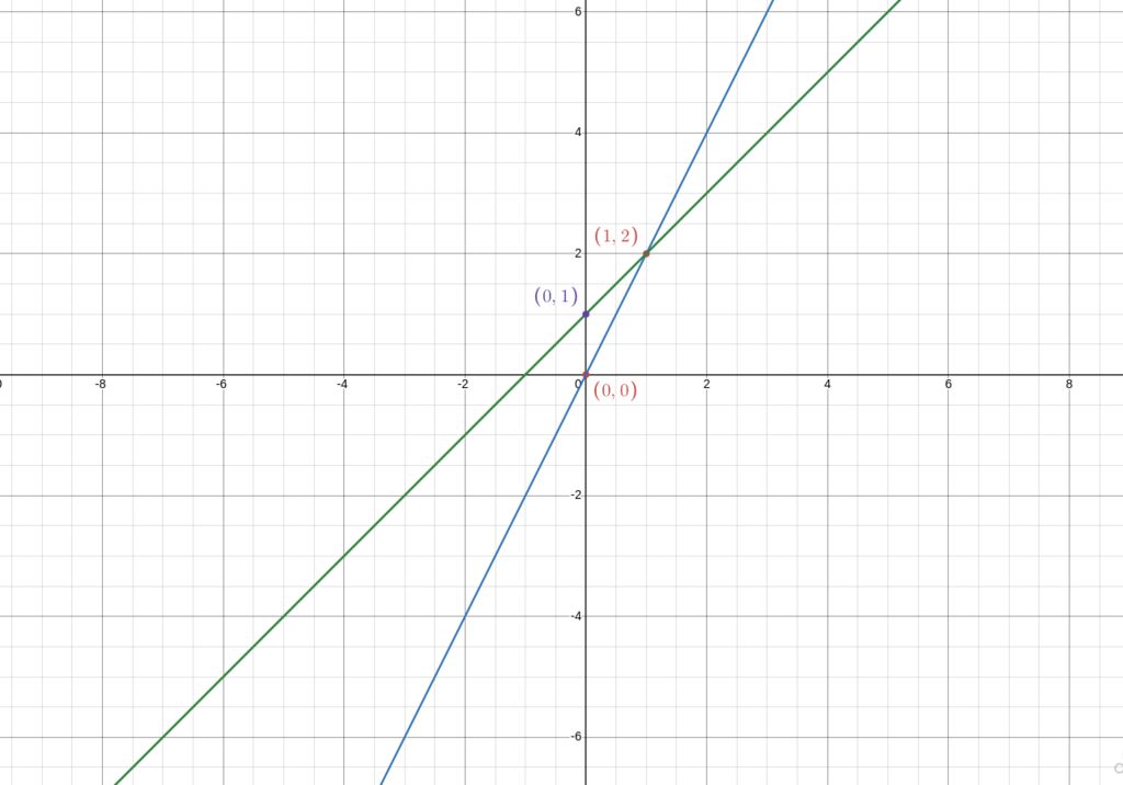 `-` Đường thẳng đi qua gốc toạ độ `O(0;0)` và điểm ( `1;2`)