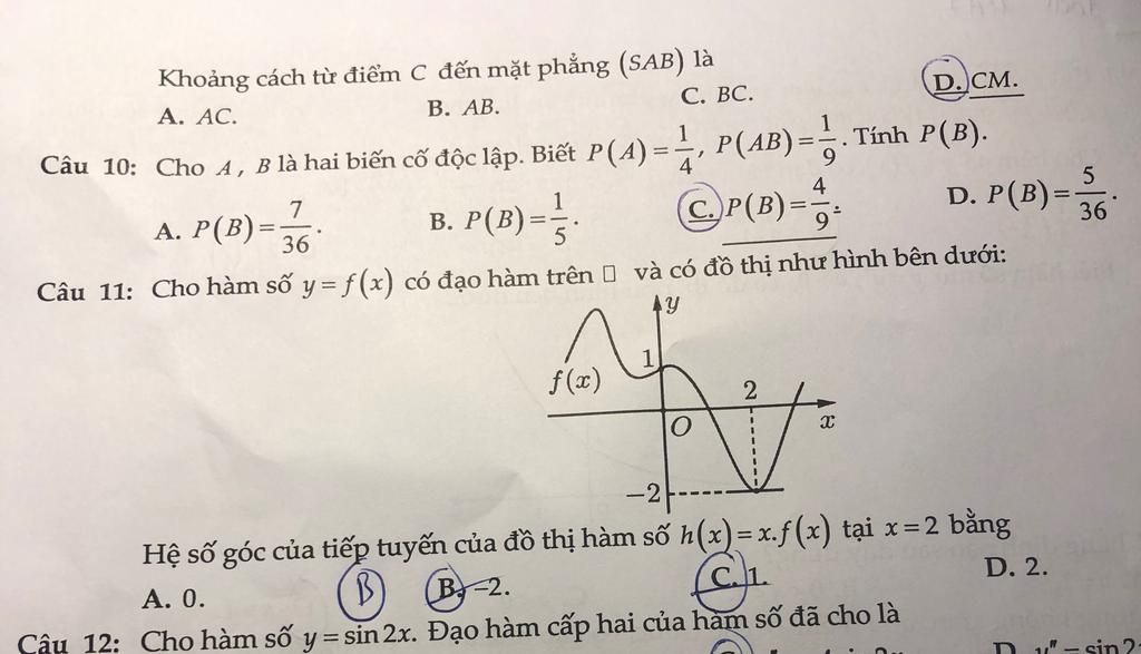 Từ đồ thị $\to f(2)=-2, f'(2)=0$ vì $x=2$ là cực trị của $f(x)$
