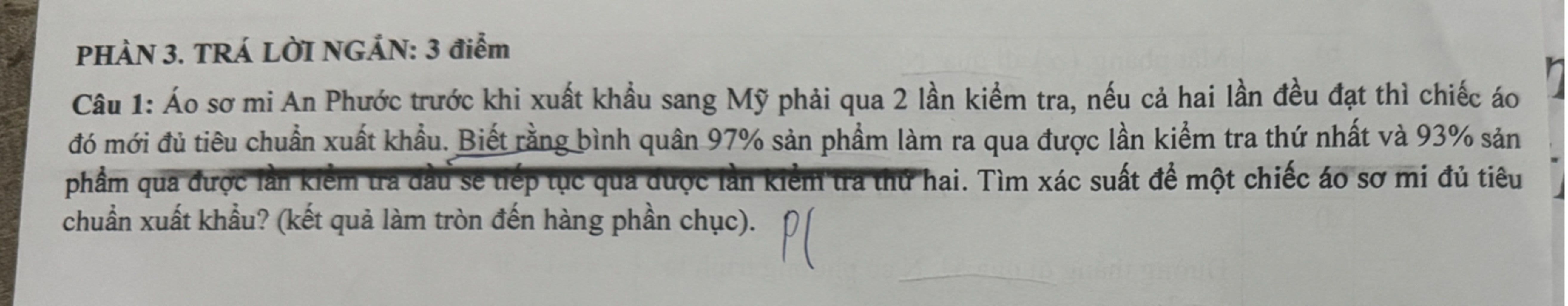 Xác suất áo đru tiêu chuẩn xuất khẩu là:
