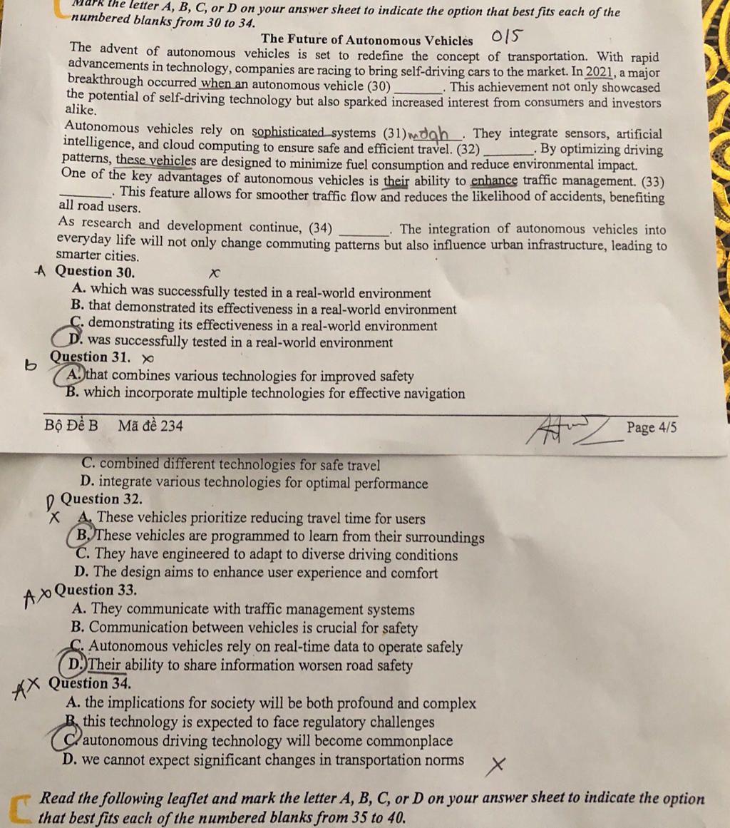 Mark the letter A, B, C, or D on your answer sheet to indicate the option that best fits each of the