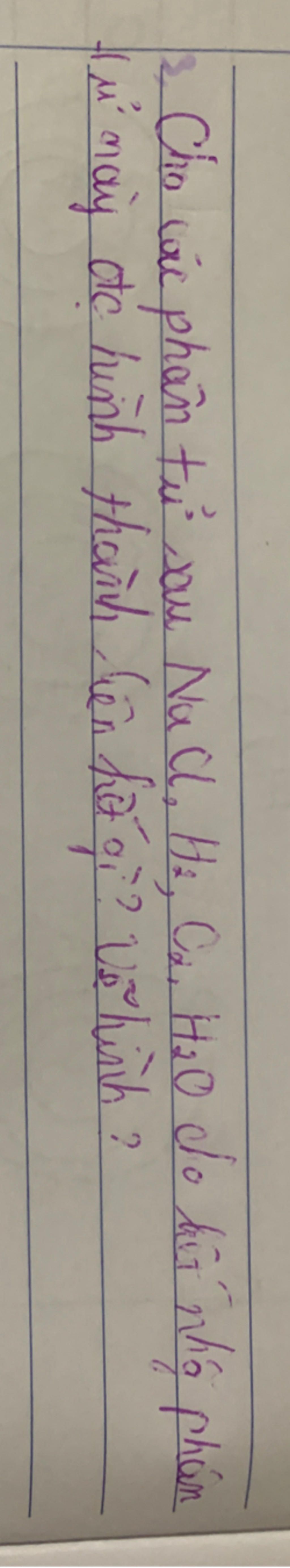 Giải thích : Na là kim loại dễ nhường 1 electron ⇒ trở thành ion Na⁺. Cl là phi kim, có xu hướng nhận 1 electron ⇒ trở thành ion Cl⁻. Hai ion trái dấu hút nhau tạo thành liên kết ion.