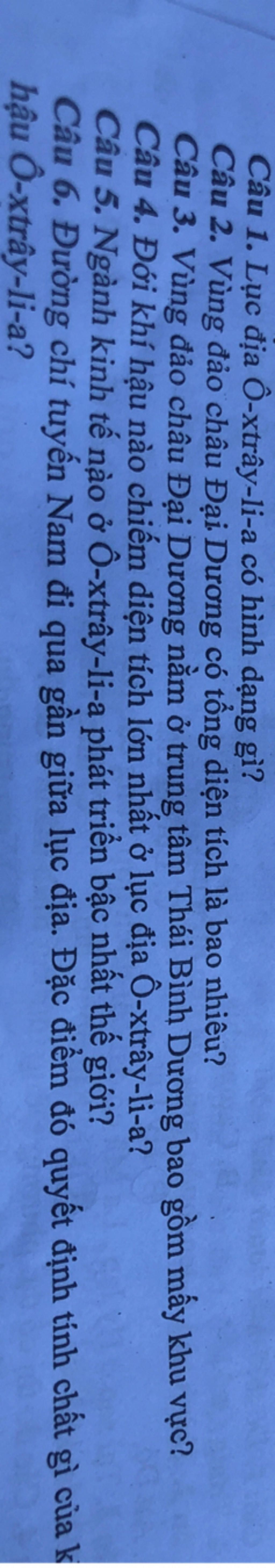 Vùng đảo Châu Đại Dương nằm ở trung tâm Thái Bình Dương, bao gồm bốn khu vực đó là Mê -la-nê-di, Mi-crô-nê-di, Pô-li-nê-di, Niu-di-len.