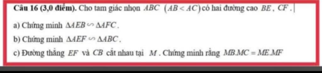 `c,` Vì ` \Delta AEF`$\backsim$`\Delta ABC` (câu c)