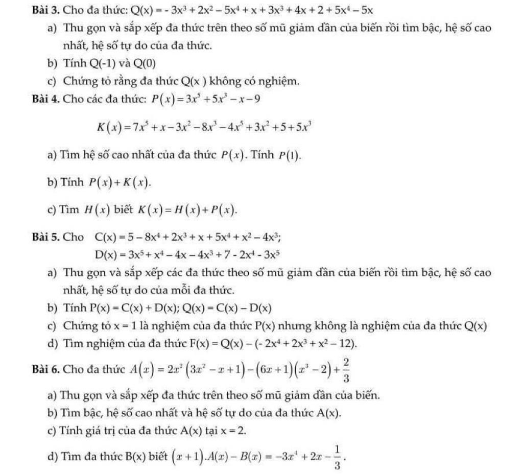 b. Ta có: K(x)= 7x5 + x − 3x² − 8x³ − 4x5 + 3x² + 5 + 5x³