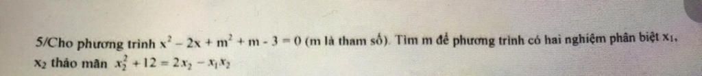 `{(x_1+x_2=2),(x_1x_2=m^2+m-3):}` (Viète)